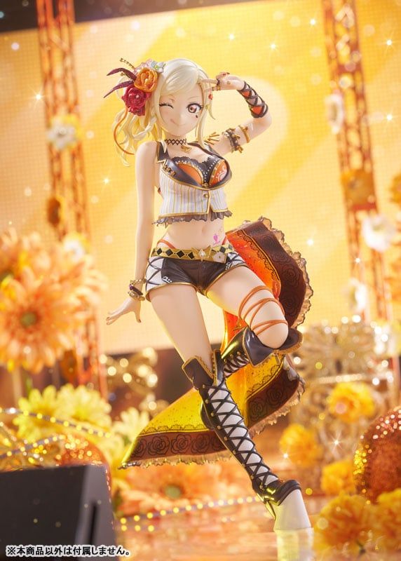 The Ai Miyashita figure is dynamically sculpted, showcasing her confident and energetic idol persona. Every minute detail of her colorful stage costume, from the intricate fabric folds to her hair accessories and cheerful facial expression, is meticulously sculpted and painted, bringing the character to life as if she's about to perform. Standing approximately 230mm tall at a 1/7 scale, the figure is crafted from durable PVC material, ensuring sharp details and vivid colors that last. It is a miniature work of art that fully encapsulates the spirit and charm of Ai Miyashita.