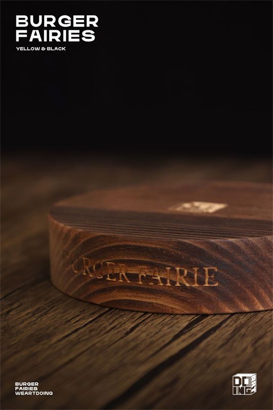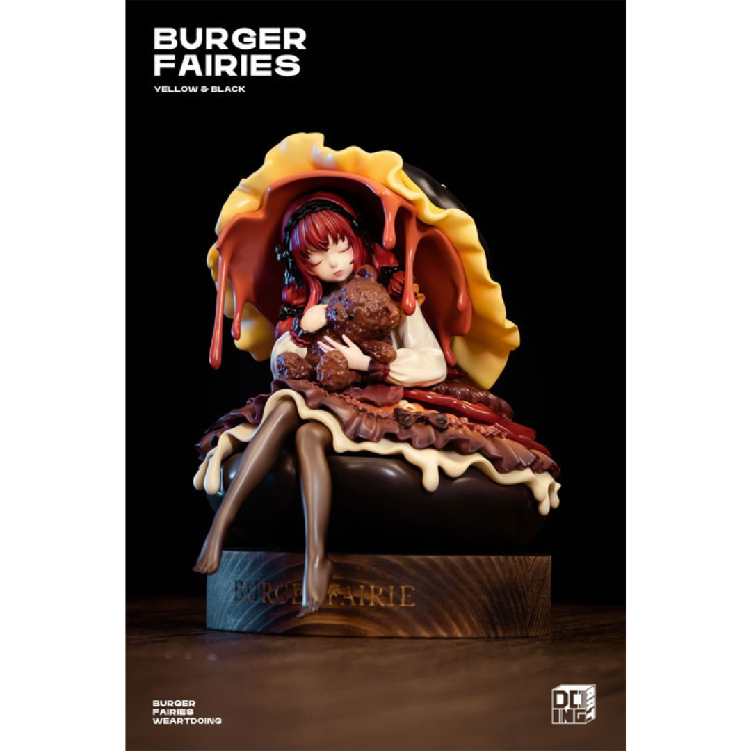 This official Burger Fairies Black Deluxe Edition figure by WE ART DOING stands approximately 189mm tall and is crafted from premium PU with a wooden base, creating an elegant and unique display piece. The deluxe edition includes a burger package base, adding an extra touch of charm. Perfect for collectors, this pre-painted figure is securely packaged for safe delivery.