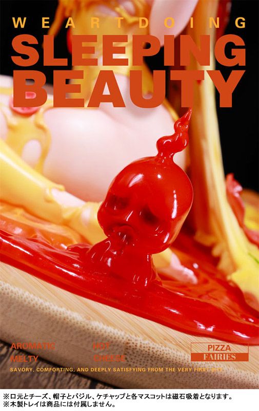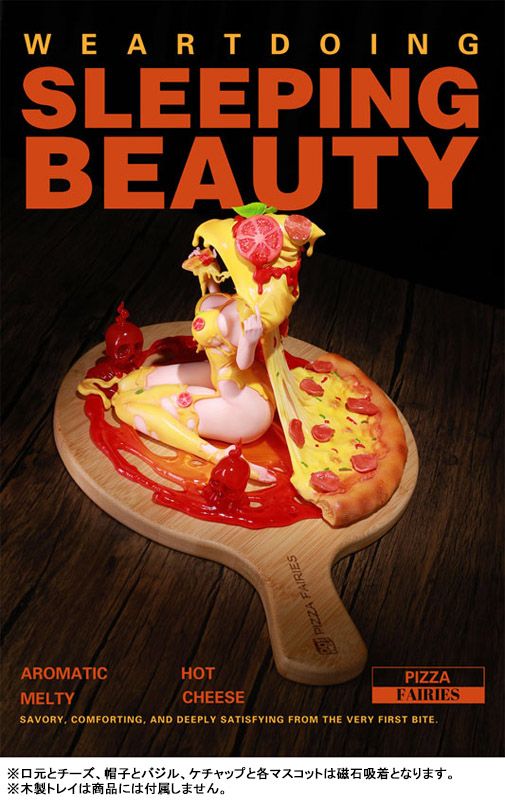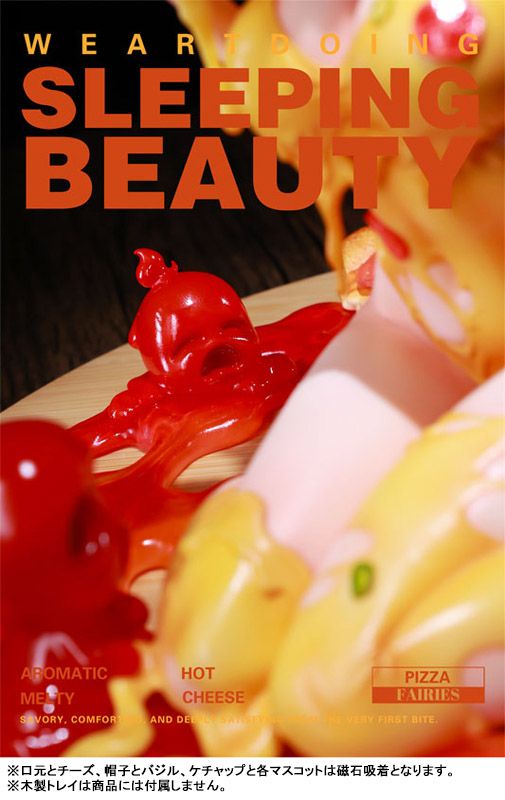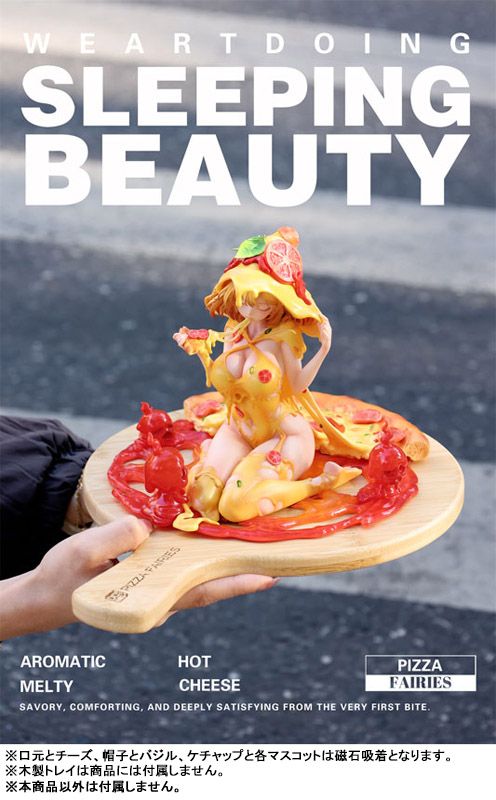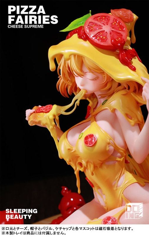 Official pre-painted figure of Cheese Supreme from Pizza Fairies by WE ART DOING, approx. 16cm tall, made of PU with magnets. Multiple parts are magnetically attached (mouth & cheese, hat & basil, ketchup and mini characters), letting you easily customize the look for display. Wooden tray shown in photos is not included.