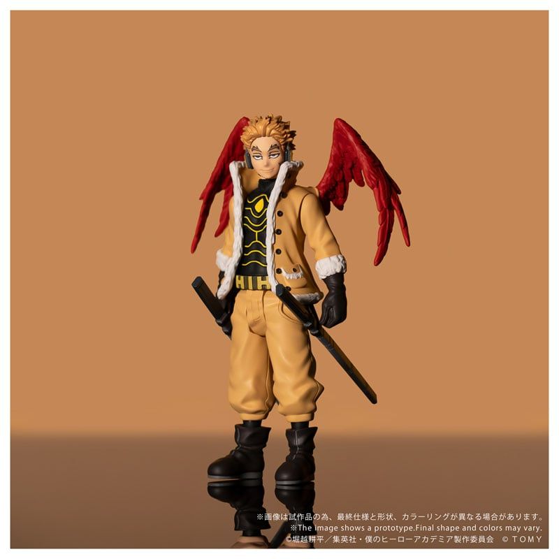 Mô hình figure chính hãng COLLEKAZARO CK-M08 Keigo Takami (Hawks) từ series My Hero Academia do Takara Tomy sản xuất, kích thước khoảng W64 x H95 x D65mm, thiết kế chibi nhỏ gọn cùng thần thái "anh hùng có cánh" đặc trưng, rất hợp trưng kệ.