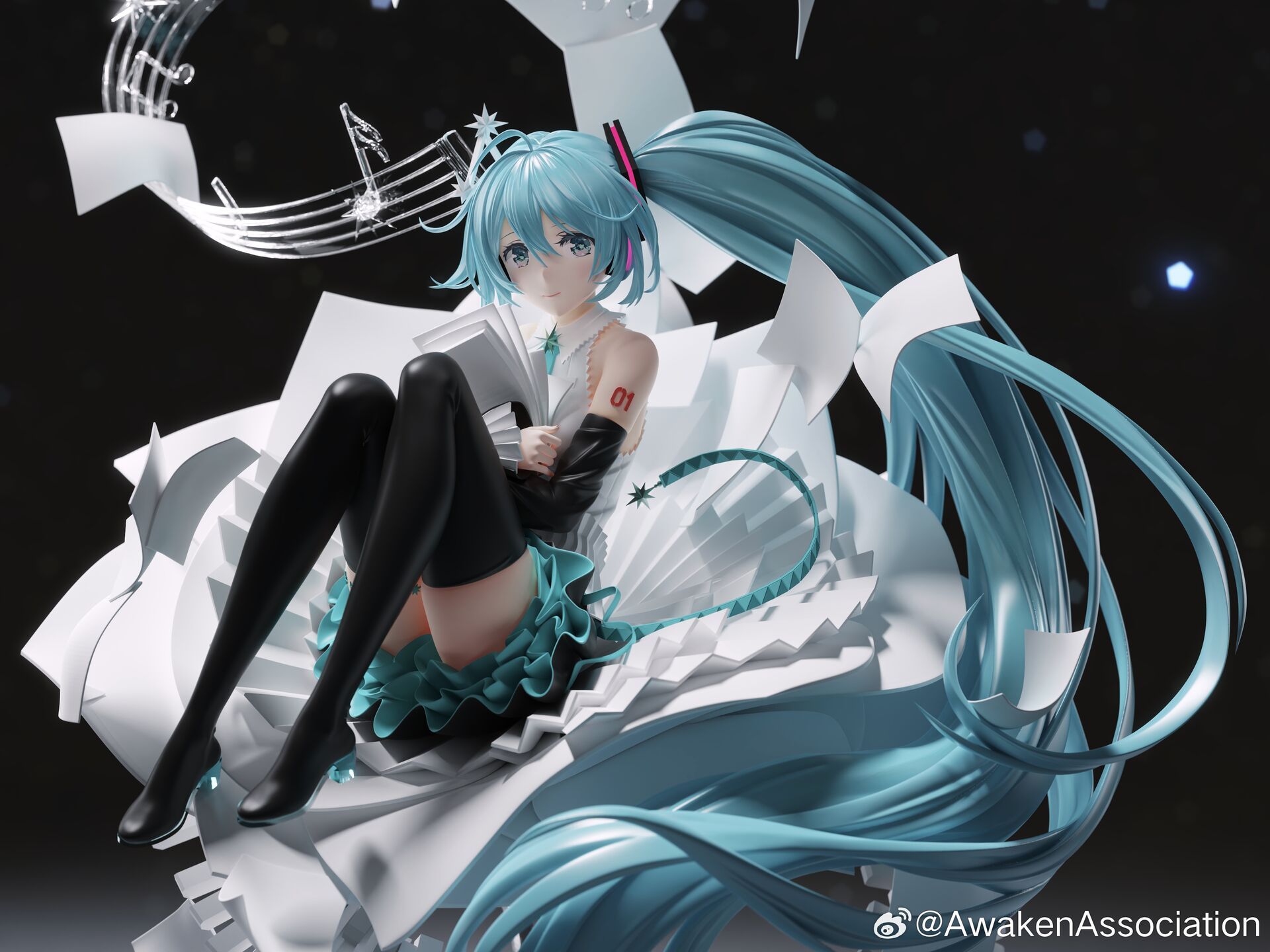 Hatsune Miku arrives in the ethereal Stargazer & Lucid Dream version by Awaken Association, released exclusively as a limited Garage Kit at Wonder Festival 2025 events. The artistic direction by Rella, sculpting from Yuume, and fine coloring by Kukai bring this dreamlike Miku to life.
