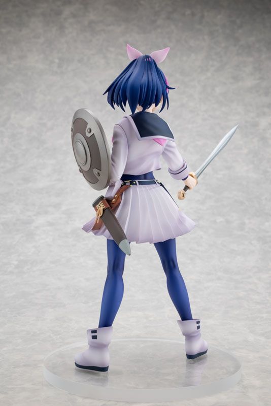 The Aki Jogamine figure is sculpted by Takatori, showcasing a dynamic and expressive pose as she wields her sword and shield. Every detail has been meticulously cared for, from her sailor uniform with a light and airy sculpt that captures the flowing features of her collar and pleated skirt fluttering in the wind, to her iconic eyes and the pink accent in her ponytail. The figure is a 1/7 scale, standing approximately 220mm tall, and is made of high-quality Plastic. The paintwork, executed by Takeuchi Ham, ensures vibrant colors and sharp details. As a special bonus, the product includes an exclusive flustered face part, allowing collectors to customize their display.