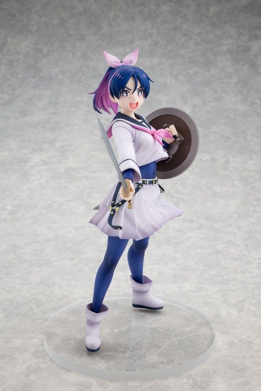 Sculpted by Takatori, the figure depicts Aki Jougamine in a dynamic, ready-for-battle pose, wielding her sword and shield. Intricate details, such as the flowing collar of her sailor uniform and the pleated skirt fluttering in the wind, are expertly crafted, creating a sense of lightness and motion as if stepping right out of the story. Her distinctive eyes and the subtle pink accent in her ponytail are also meticulously recreated down to the smallest detail. Standing approximately 220mm tall at a 1/7 scale, the figure is made from durable Plastic. The paintwork by Takeuchi Ham ensures vibrant colors and smooth shading, perfectly capturing Aki's energetic spirit.