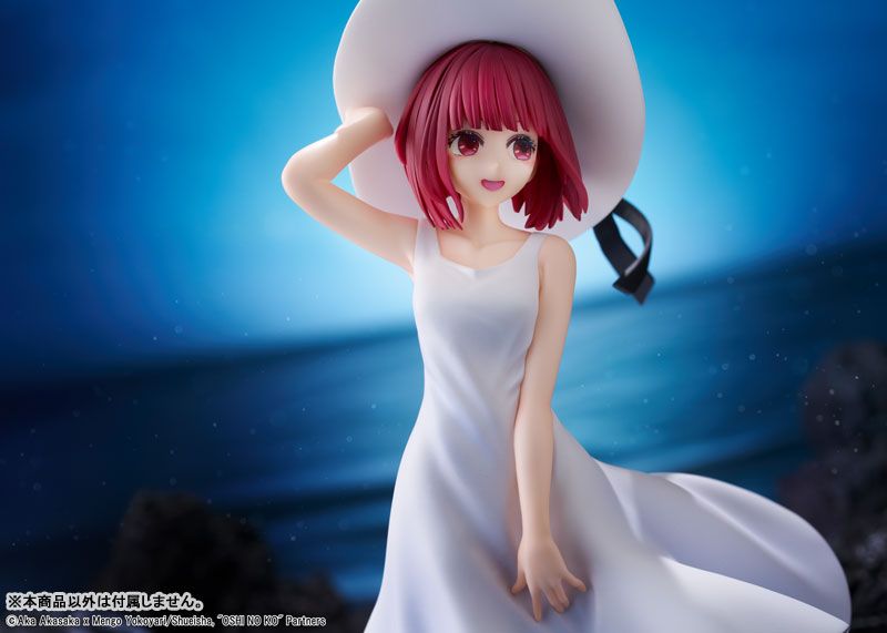The figure of Kana Arima in the "Full moon...!" ver. from the anime series [Oshi no Ko], produced by KADOKAWA. This figure is made of plastic, with a height of approximately 185mm. The design is exquisite and lively, featuring a white dress flowing in the wind, creating a graceful and elegant image. Kana Arima is depicted in a pose looking directly at you with a gentle smile, showcasing a different side of her - calm and serene, contrasting her usually bright and strong-willed personality. This figure is a must-have addition for fans of [Oshi no Ko]. The product is carefully packaged to ensure safety during transport and storage.