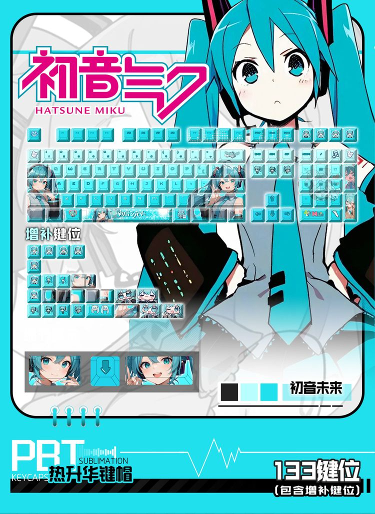 | Đặc điểm | Anime Keyboard Goods Chủ đề: Hatsune Miku Chất liệu: PBT Công nghệ in: Dye-Sublimated Phù hợp bàn phím cơ |