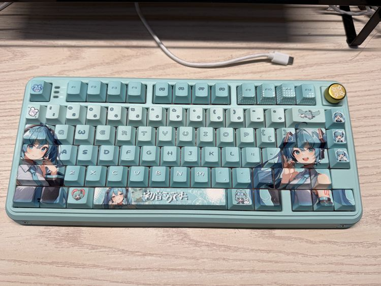 Keycap được làm từ chất liệu PBT cao cấp, sử dụng công nghệ Dye-Sublimated giúp hình ảnh và màu sắc bền lâu, khó phai theo thời gian sử dụng. Bề mặt keycap có độ nhám nhẹ, cảm giác gõ chắc tay và hạn chế bám mồ hôi tốt hơn so với keycap ABS thông thường. Họa tiết Hatsune Miku được in sắc nét, mang đậm phong cách anime hiện đại, phù hợp với nhiều layout bàn phím cơ phổ biến.