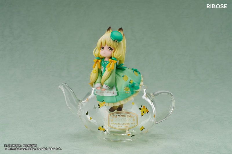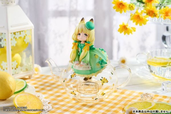 The Lemon Cat figure from the "Tea Time Cats" series by Ribose offers a unique and charming chibi design. Standing approximately 158mm tall (including the teapot), this figure is crafted from durable ABS and PVC, with the teapot portion made of heat-resistant glass for added realism. Designed by PANDA JIANG and supervised by Mo_, the piece boasts bright and vivid colors, perfectly capturing Lemon Cat’s playful essence. This exclusive edition includes the main figure, teapot, ice part, and a display base, as well as a special tin badge as a preorder bonus. With its exclusive availability and high collectible value, Lemon Cat is an excellent addition for collectors and cat lovers alike. The figure is securely packaged for safe transport, making it a remarkable highlight in any collection.