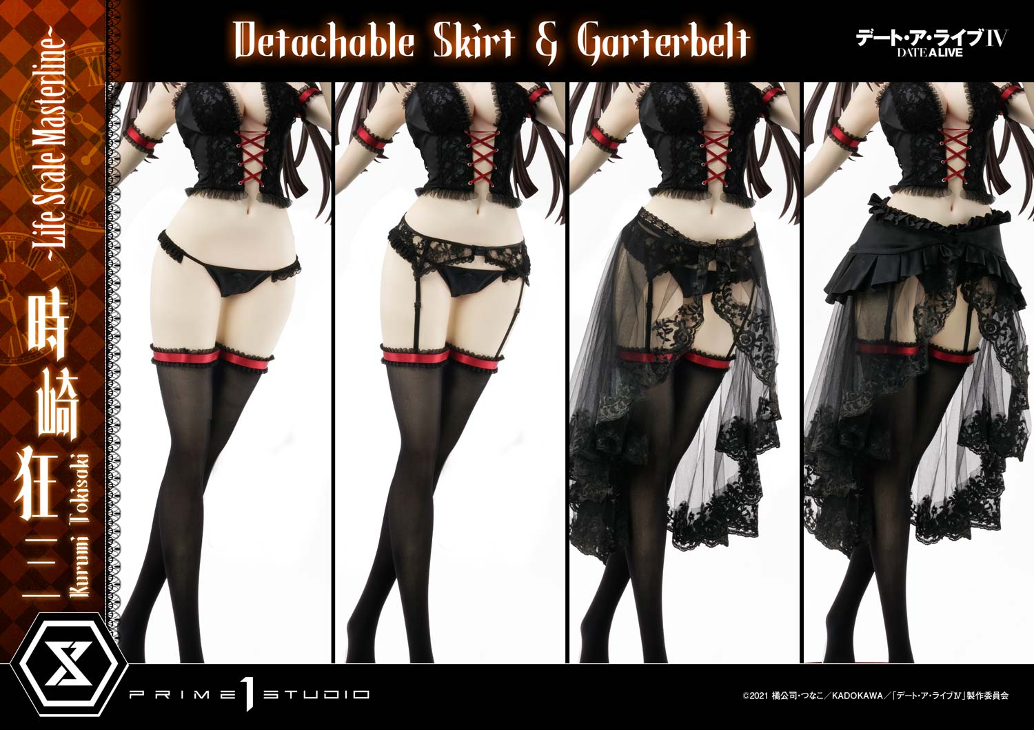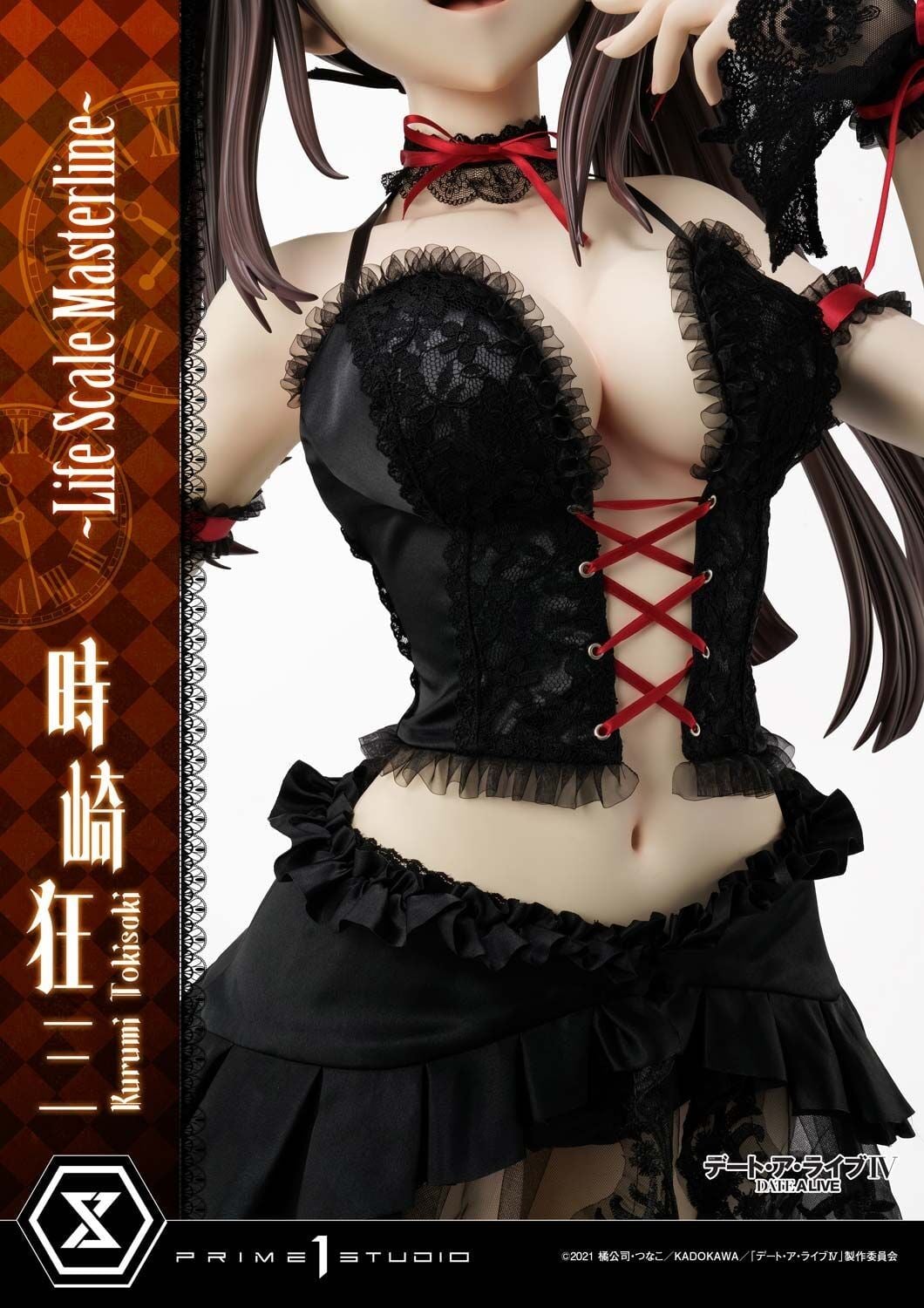 Tokisaki Kurumi is one of the most iconic characters from the Date A Live series, known for her alluring yet dangerous charm. This 1:1 life-size figure is part of the Life Scale Masterline and Prisma Wing collaboration by Prime 1 Studio, representing the highest tier of collectible figures.
