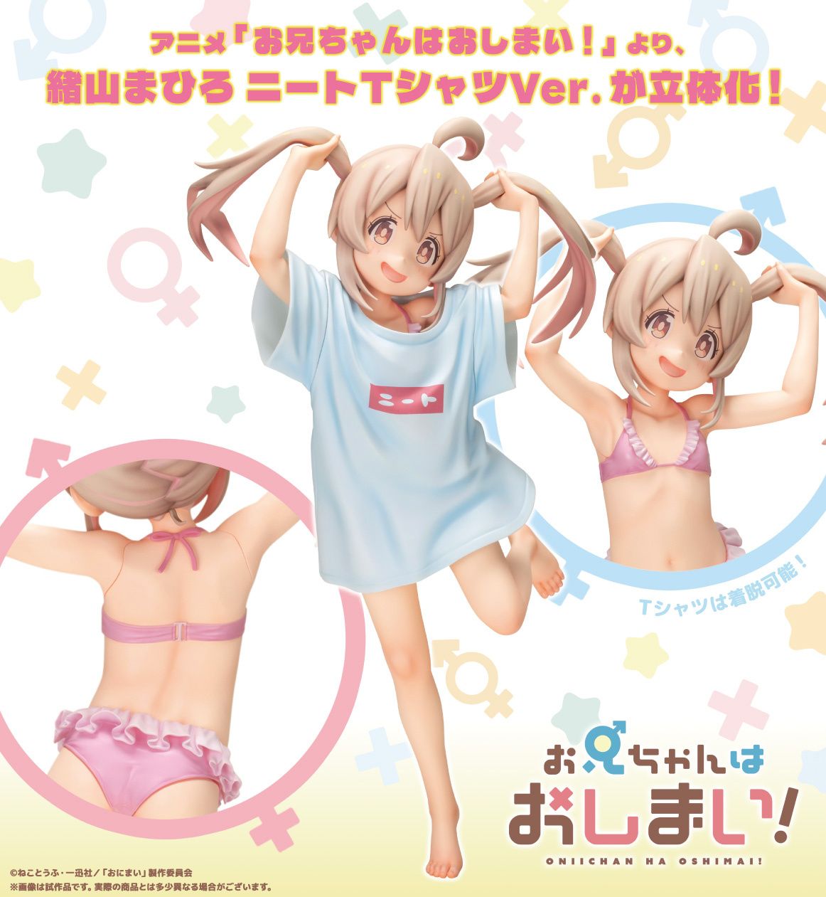 The Mahiro Oyama figure from the popular anime series "Onii-chan wa Oshimai!" is produced by the renowned brand Kotobukiya. This NEET T-Shirt Ver. is a 1/6 scale figure, standing approximately 250mm tall including the base. Mahiro is portrayed in a simple yet stylish NEET-themed T-shirt, making the figure both relatable and adorable. Crafted from high-quality PVC material, the figure boasts durability, vivid coloring, and impeccable detailing, from the facial expression to the folds of the outfit. The sculpting by SHINKAI CREATE brings Mahiro to life with a dynamic and realistic design. This figure is a must-have for fans of the series and collectors who appreciate larger-scale figures. It comes with secure packaging to ensure the best condition during shipping and storage. This figure is an excellent addition to any collection and is a perfect representation of Mahiro Oyama.