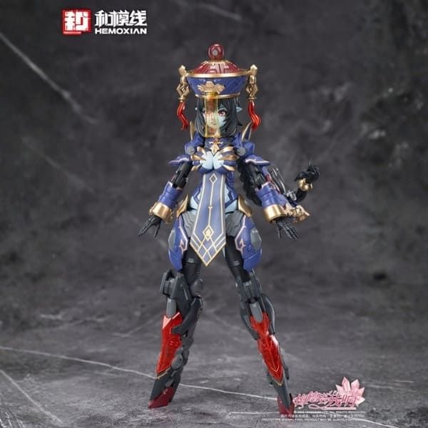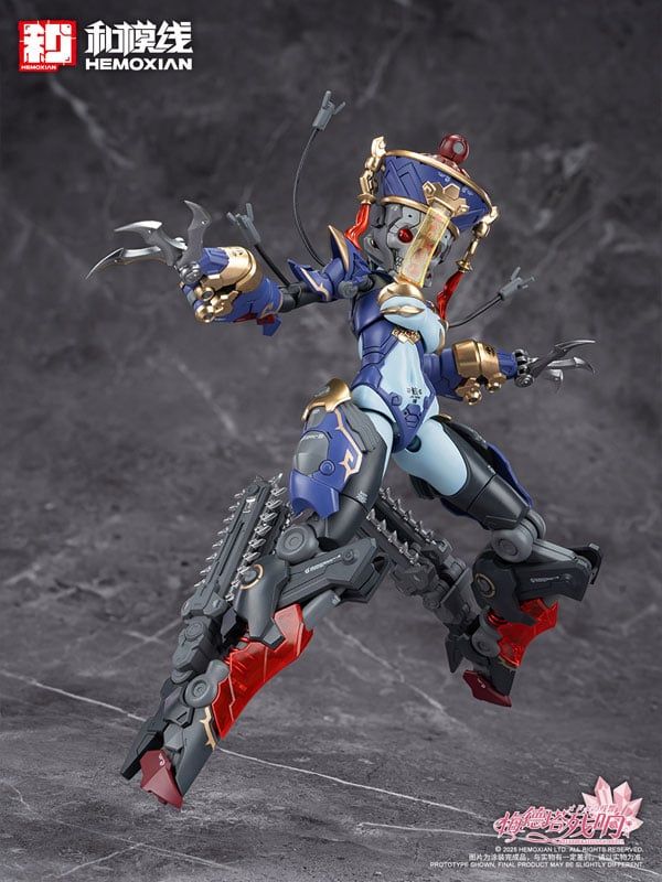 Mô hình lắp ráp chính hãng Model Kit Jiangshi Jiulian Regular Edition Second Production Edition 1/10 từ Reverberation of Medta do HEMOXIAN sản xuất, cao khoảng 150mm (body mode) hoặc 185mm (armament mode), chất liệu ABS/PS kèm chi tiết vải (cloth) cùng thiết kế jiangshi độc đáo, 2 chế độ trưng bày và bộ vũ trang nhìn rất "ngầu".