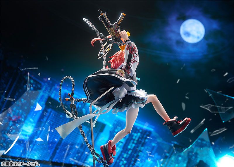 The figure boasts intricate sculpting by Kataharaitashi, with meticulous paintwork by Bread-Loving Housewife, supported by GSC Production Department and designed by Mx2J. Every detail is rendered with precision, from her resolute smile to the powerful stance as she wields her signature **Twin Dragon** guns. Her souvenir jacket, worn over her maid outfit, features a special pearlescent paint finish, recreating the unique texture and intricate embroidery on the back and sleeves. Standing at an impressive height of approximately 320mm in 1/7 scale, the figure is constructed from durable Plastic (PVC and ABS), ensuring both longevity and exceptional detail retention.