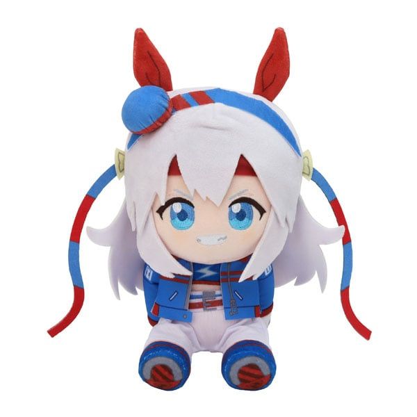 Tamamo Cross appears as an official KuiKui plush from the anime Uma Musume Cinderella Gray. Produced by Movic, this item features a seated chibi design that captures her bold yet charming personality.