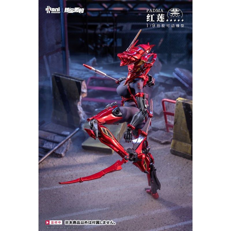 The Padma (Guren) 1/9 Seamless Action Figure by Animester stands approx. 208mm tall and features a seamless silicone body with durable PVC/ABS/metal/POM construction. It comes with multiple interchangeable hand parts and a wide set of weapons & gear, including the Padma blade and shaped charge accessories for dynamic tactical poses. A first-press bonus foot-raising board and silicone foot part are included to support more stable, expressive display options.