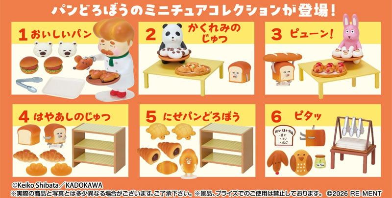 Khám phá thế giới đáng yêu của Pan Dorobou to Ojisan no Kodawari Panya-san qua bộ sưu tập miniature BOX 6 Pack từ RE-MENT. Dựa trên series sách thiếu nhi nổi tiếng Pan Dorobou (Kẻ trộm bánh mì) của tác giả Keiko Shibata, bộ sản phẩm này mang đến hình ảnh một tiệm bánh mì thủ công đầy tâm huyết của ông chú và những khoảnh khắc hài hước, dễ thương của chú trộm bánh mì. RE-MENT, thương hiệu nổi tiếng với các mô hình thu nhỏ chi tiết và sống động, đã tái hiện một cách chân thực không khí ấm cúng và những chiếc bánh hấp dẫn trong từng set.