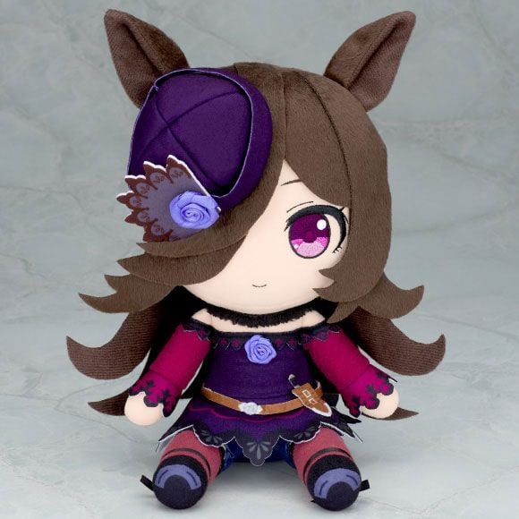 The plush measures approximately 20cm in height and is crafted from soft, durable fabric. Details such as Rice Shower's dark blue hair, horse ears, and signature racing outfit are faithfully recreated, giving the plush an adorable and refined look. Its compact size makes it perfect for display or carrying around with ease.
