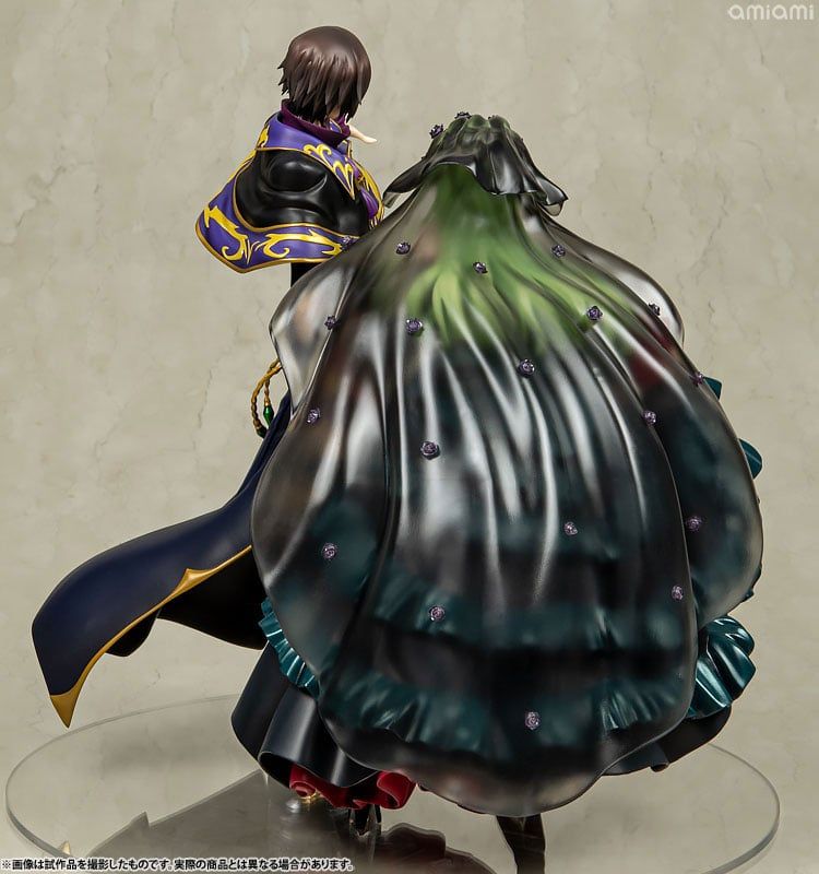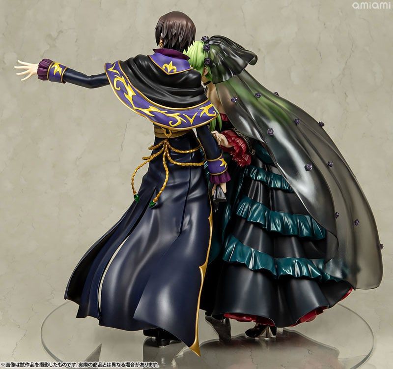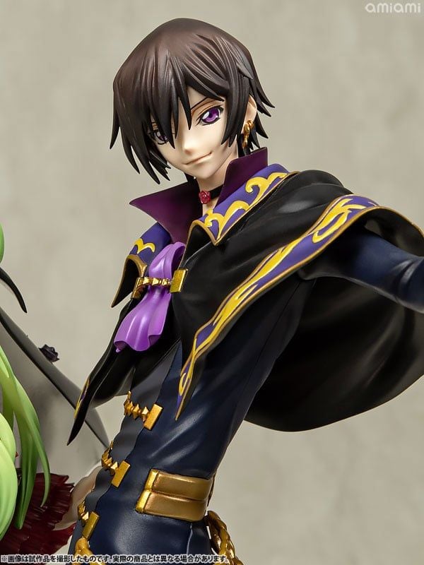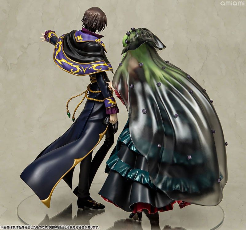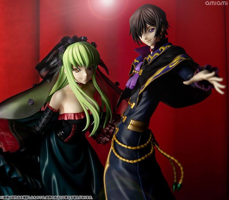 Mô hình figure chính hãng Precious G.E.M. Lelouch Lamperouge (L.L.) & C.C. Set từ series Code Geass Re;surrection do MegaHouse sản xuất, cao khoảng 24.5cm (L.L.) & 22cm (C.C.), chất liệu PVC, ABS cùng bộ phụ kiện trưng bày phong phú (parts thay thế, hoa hồng và base trưng bày đôi/riêng).