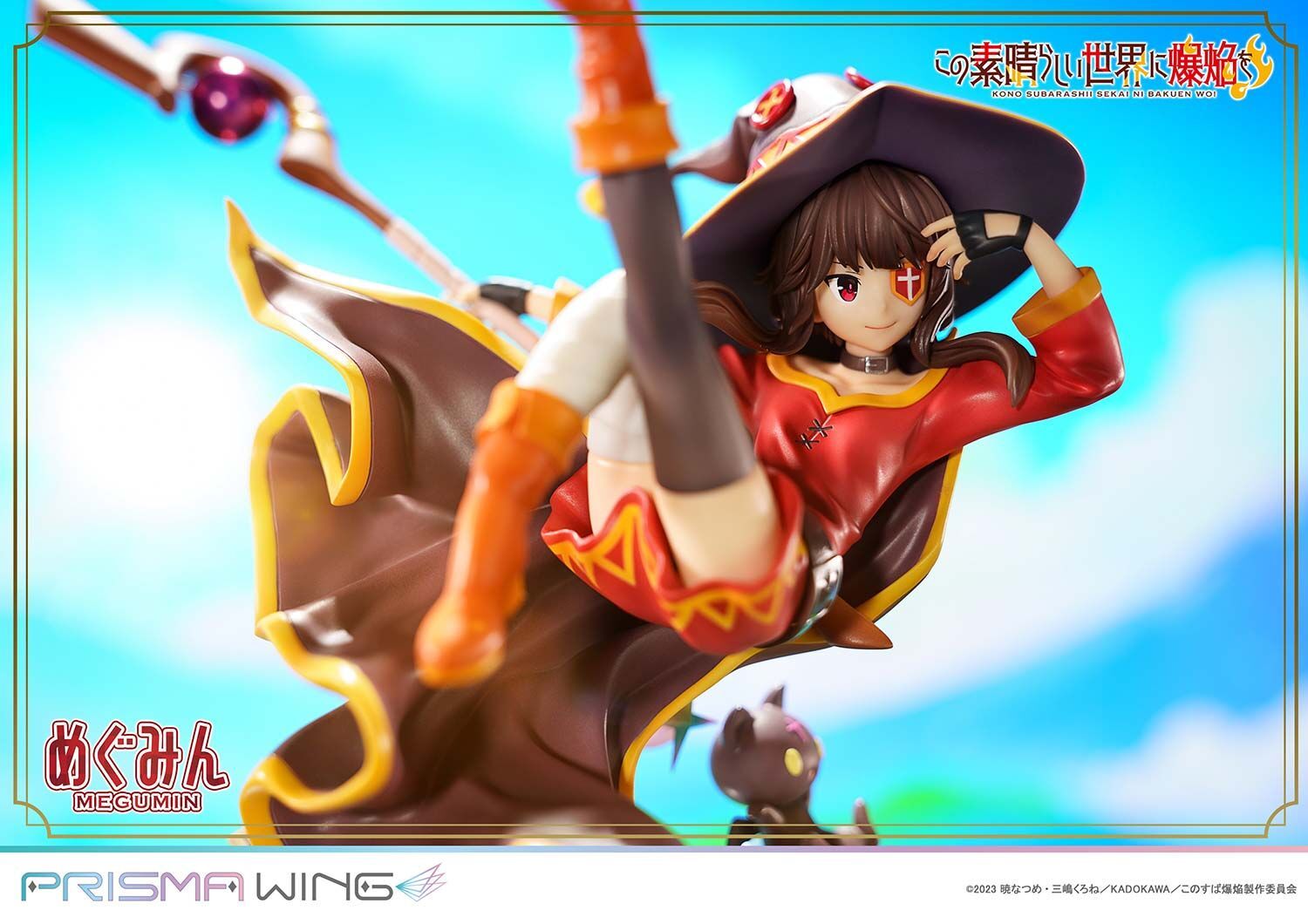 The Prisma Wing figure of Chomusuke and Megumin from the series "Kono Subarashii Sekai ni Bakuen o!" is a premium collectible produced by Prime 1 Studio. Crafted in 1/7 scale from high-quality ABS and PVC materials, this figure captures the detailed and vibrant appearance of Megumin and her familiar, Chomusuke. With dimensions of W=200mm, L=180mm, H=230mm, this figure showcases the dynamic energy and charm of the characters. Set for standard release in Japan in April 2025 at a price of 37,900 JPY, this figure is perfect for fans of Megumin, Chomusuke, and the "KonoSuba" series, making it a must-have addition to any collection.