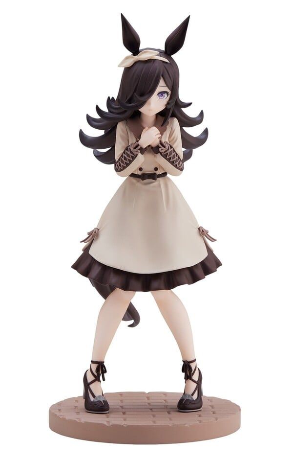 The figure features a calm and charming pose, with careful attention to facial expression and hair sculpting that truly captures Rice Shower's delicate character. Made from durable ABS and PVC, the paintwork is clean and stable. Standing at approximately 160mm tall, it is an ideal size for display on desks or shelves without taking up too much space.
