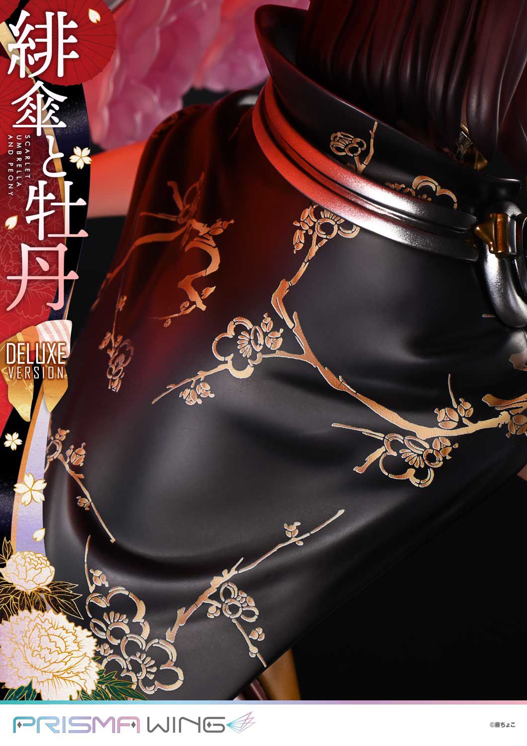 The Scarlet Umbrella And Peony Deluxe Version figure from the PRISMA WING series, inspired by Fujichoco's Original Illustration, is produced by Prime 1 Studio. Standing at 1/7 scale, this completed and painted figure captures the elegance of the character with intricate details, including the red umbrella and beautiful peonies. It brings a sense of classic tradition with modern artistry, a true work of art by Fujichoco. Scheduled for release on September 30, 2025, this figure is limited to 3 units per person. It will be securely packaged to ensure safe delivery, making it a perfect addition to any high-end collection.