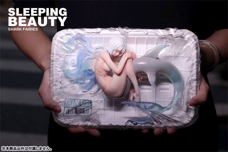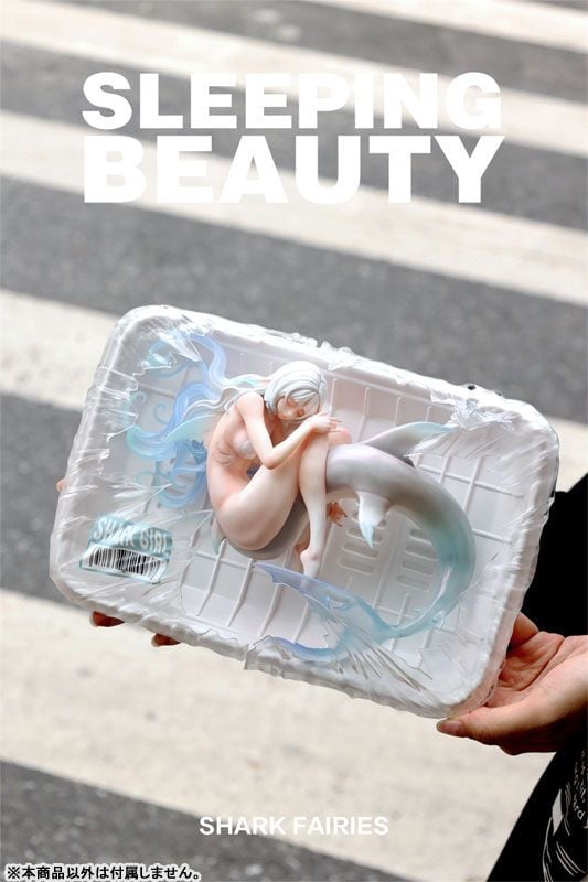 This pre-painted complete figure of Shark Fairy Silver Fin from the original Shark Fairies line by WE ART DOING stands approximately 25.2cm tall including the stand and is made of PU with built-in magnets. The detachable torn plastic wrap parts and tray part can be freely rearranged thanks to the magnets, letting you choose between a cleaner display or a more dynamic "unwrapped" look. Subtle shading and delicate sculpting emphasize the fairy-like details, making this piece a charming centerpiece on its own or paired with other sea-themed original figures.