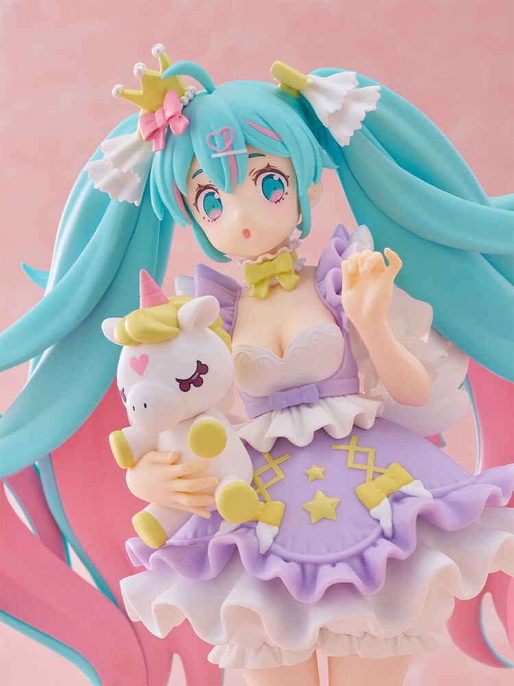 Hatsune Miku appears once again in a dreamy and adorable style with the Yumekawa Princess Lavender Ver. from the Tenitol line by FuRyu. Illustrated by Uekura Eku, this figure presents Miku as a pastel-themed princess with a soft, fantasy-like atmosphere.