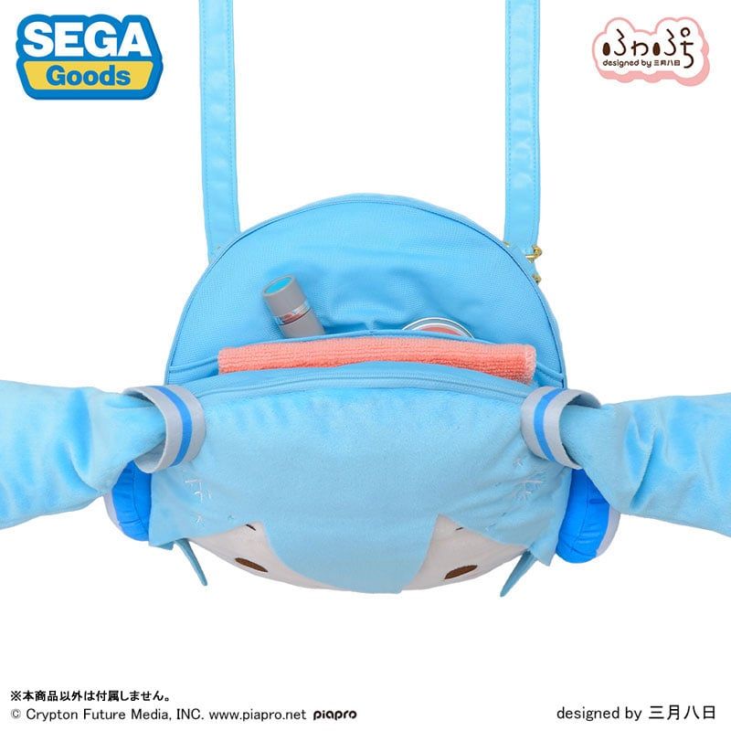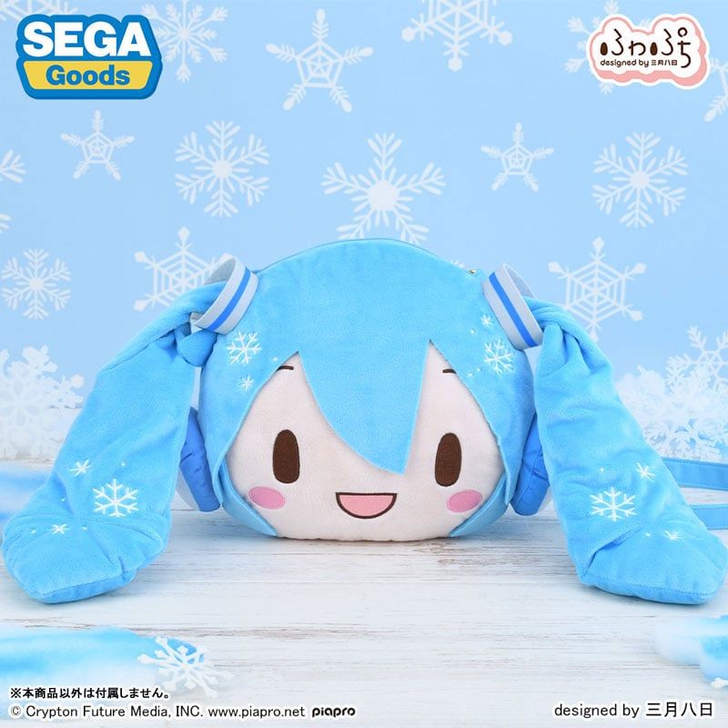 This Snow Miku face shoulder bag features a soft Fuwa Puchi design.