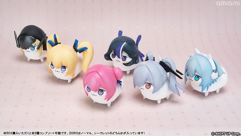 The WOBBLE WOODY DORO Action Hobby Collection 6Pack BOX brings charming collectible figures from the popular mobile game Goddess of Victory: Nikke. Produced by amiami, a well-known retailer and product developer in Japan, this collection focuses on the character DORO, a beloved figure from Nikke's post-apocalyptic world where warrior girls fight against the NIKKE invasion. This is a fantastic opportunity for fans to collect a complete set of this character's variations.